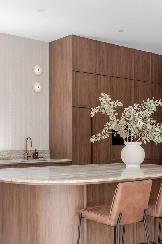 In kitchen design, walnut cabinetry and accents act as an anchor, grounding the space in the authenticity of mid-century modern style while exuding a sense of luxury and timeless appeal.