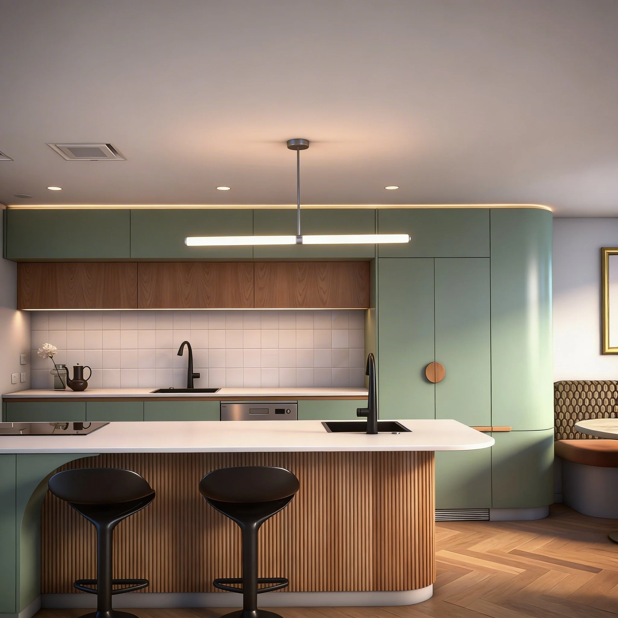 A Japandi-inspired kitchen for a busy family of five grounded, calm, and intentionally designed for slow moments, shared meals, and a home that holds both playing with the kids and entertaining friends.