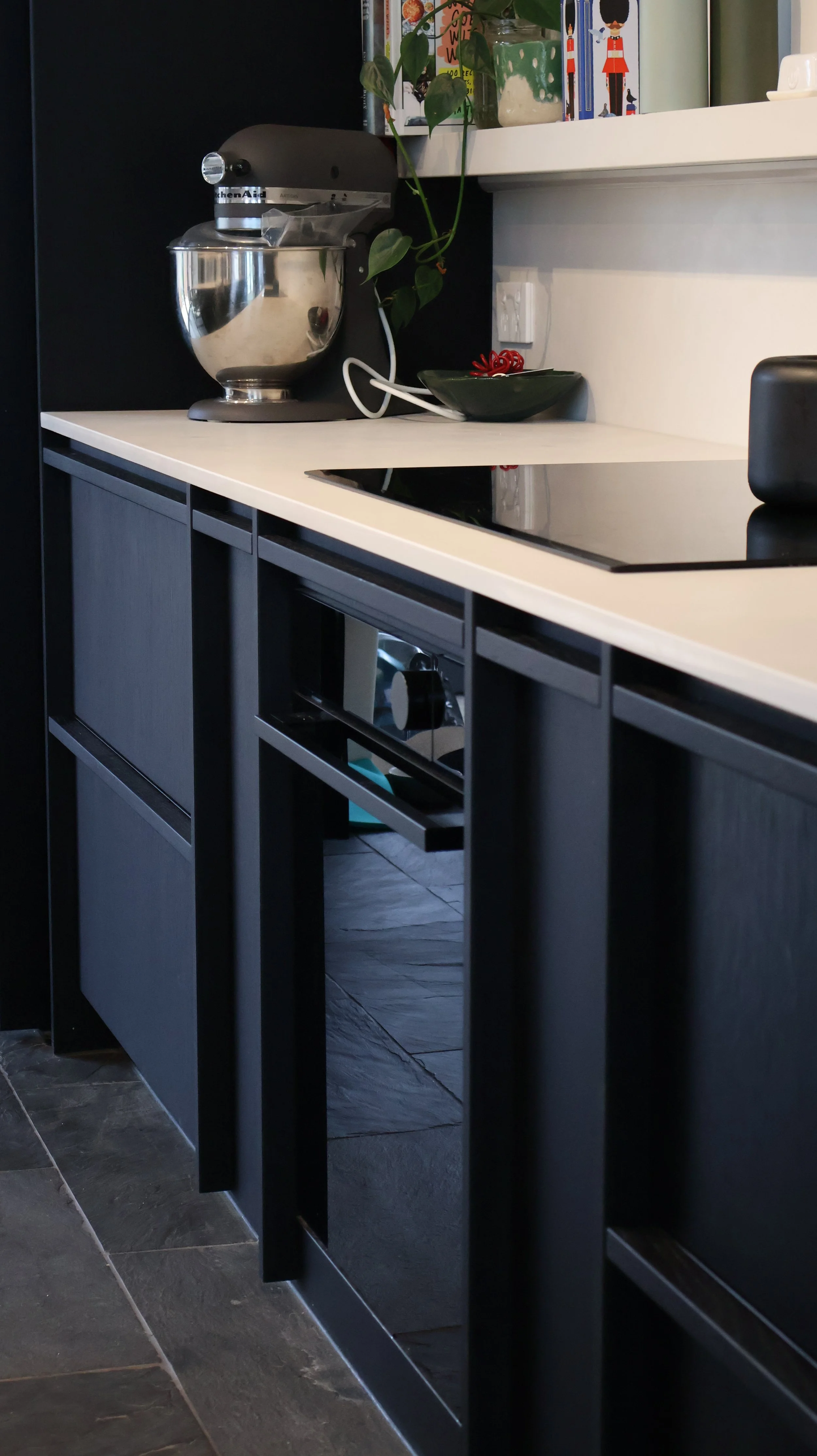 and everything afterShe needed a kitchen that could handle the afternoon chaos; lunchboxes, school bags, chargers, surfaces that stayed clear. A kid-height lunchbox drawer, a concealed drop zone, and durable finishes that don't show fingerprints.